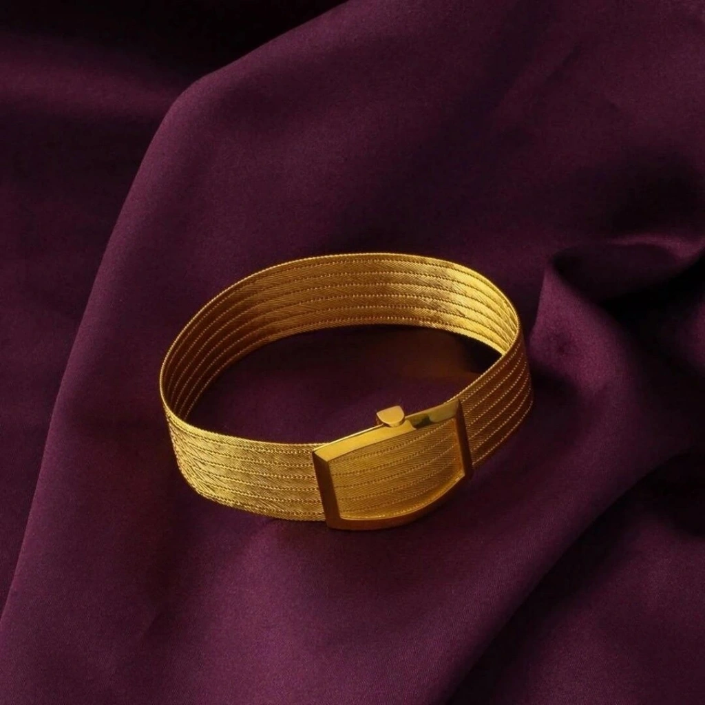 ince altın tellerinin ustalıkla bir araya getirilerek örülmesiyle oluşturulmuştur. Bu örgü deseni, bilekliğe zarif bir dokunuş ve geleneksel bir hava katar.