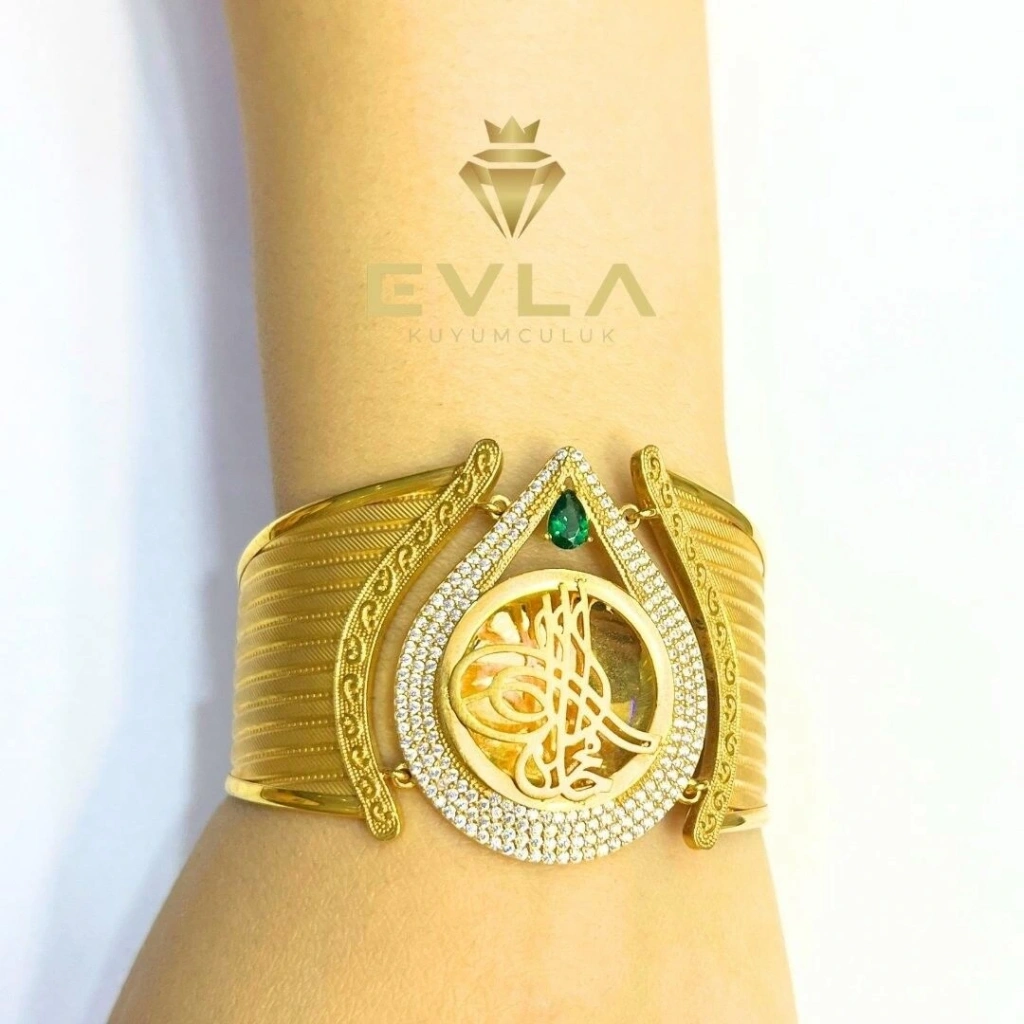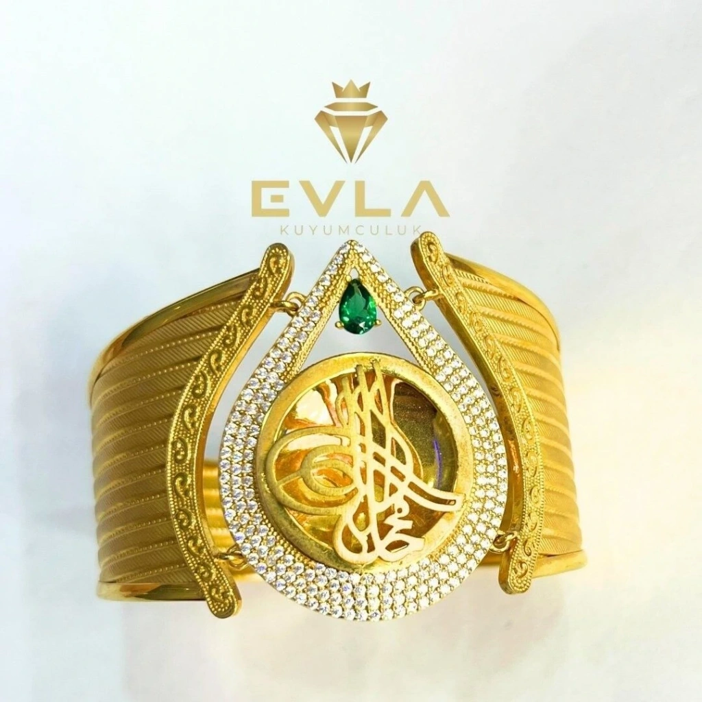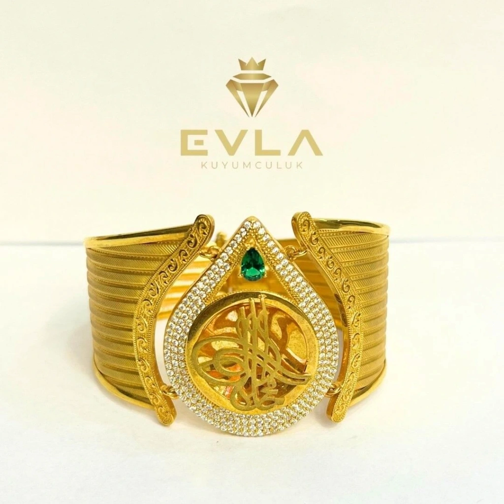 Trabzon kelepçesi, geleneksel Türk kuyumculuk sanatının zarif bir örneğiolarak bilinir ve damla deseniyle birleşerek özel bir tasarım sunar. 22,60 gramağırlığındaki bu bilezik, 8 ayar altından yapılmıştır. Damla motifi, kelepçeyeestetik bir dokunuş katarak hem modern hem de klasik bir görünüm sunar. İnceişçilikle üretilen bu Trabzon kelepçesi, zenginliği ve kültürel anlamı iledikkat çeker.