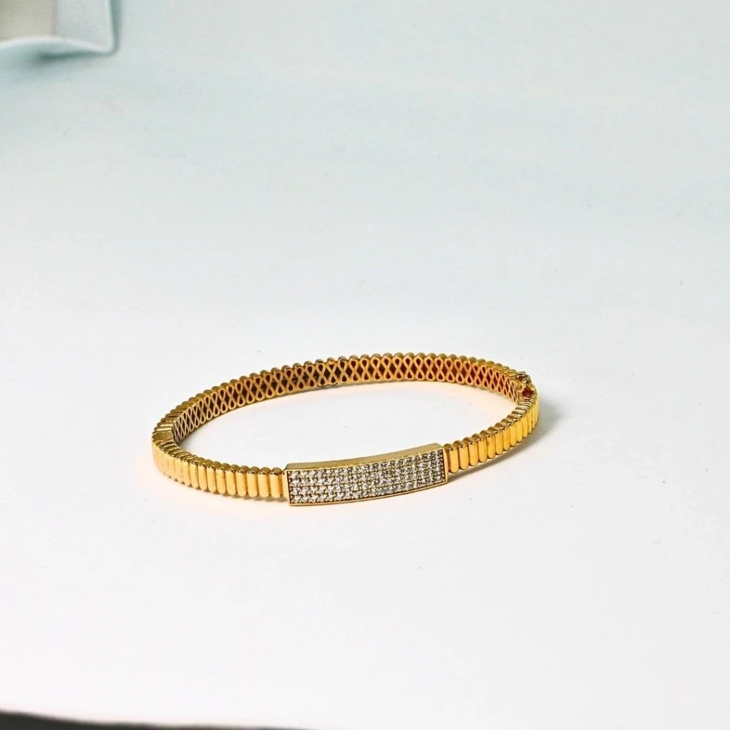 8 ayar altının doğal ışıltısını yansıtan bu kelepçe bilezik, zarif ve şık tasarımıyla her kombinle uyumludur .