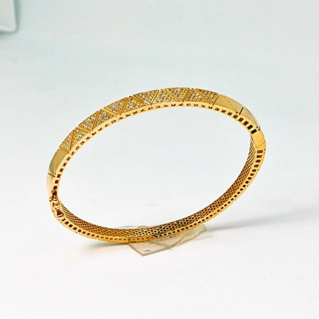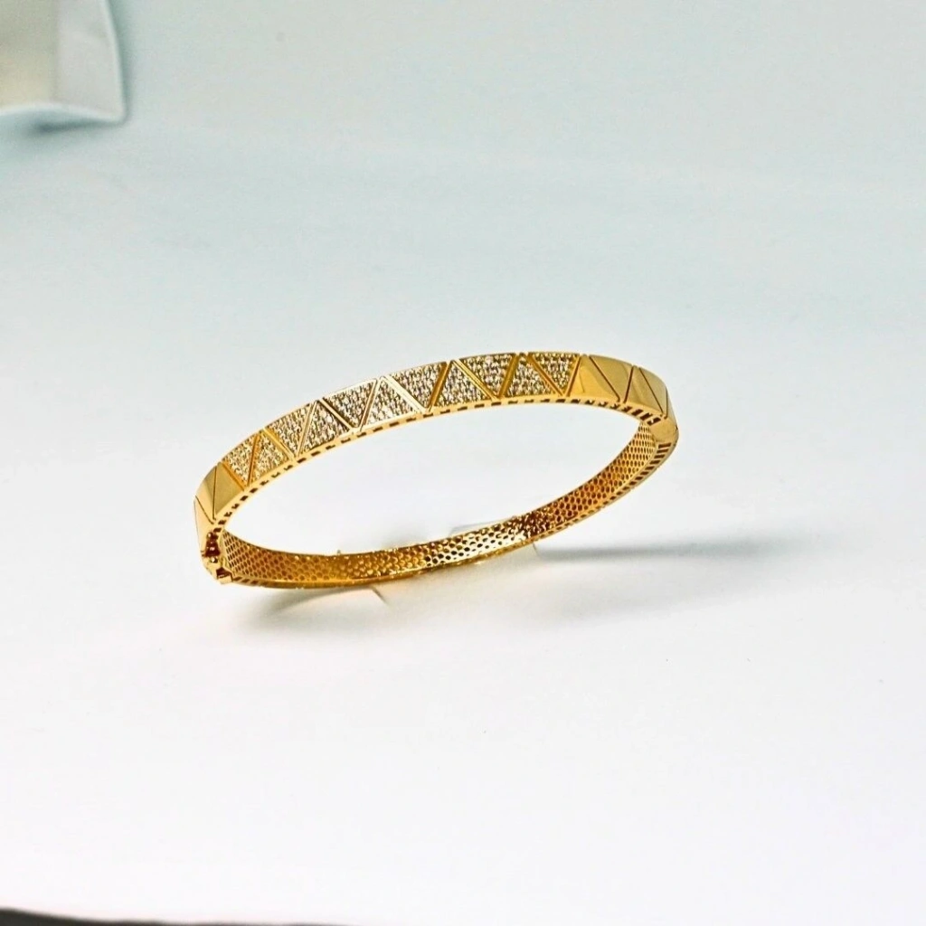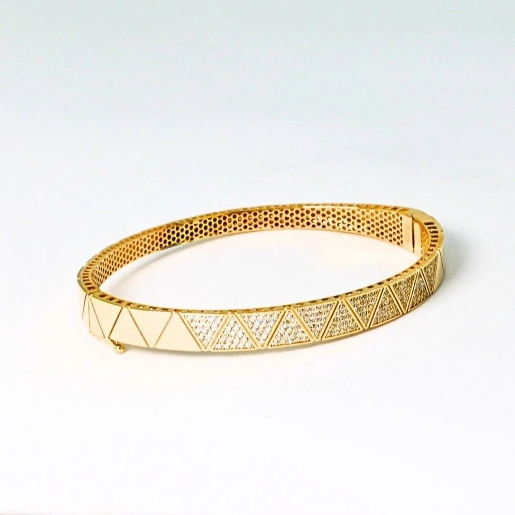 Piramit detayları, bileziğe dinamik bir hava katar . 8 ayar altının kalitesi ve ışıltısı bu parçayı uzun ömürlü ve değerli kılmaktadır. Hem kendinize hem de sevdiklerinize hediye edebileceğiniz bu kelepçe bilezik, stilinize sofistike bir dokunuş ekleyecek ve her kombinle uyum sağlayacaktır.