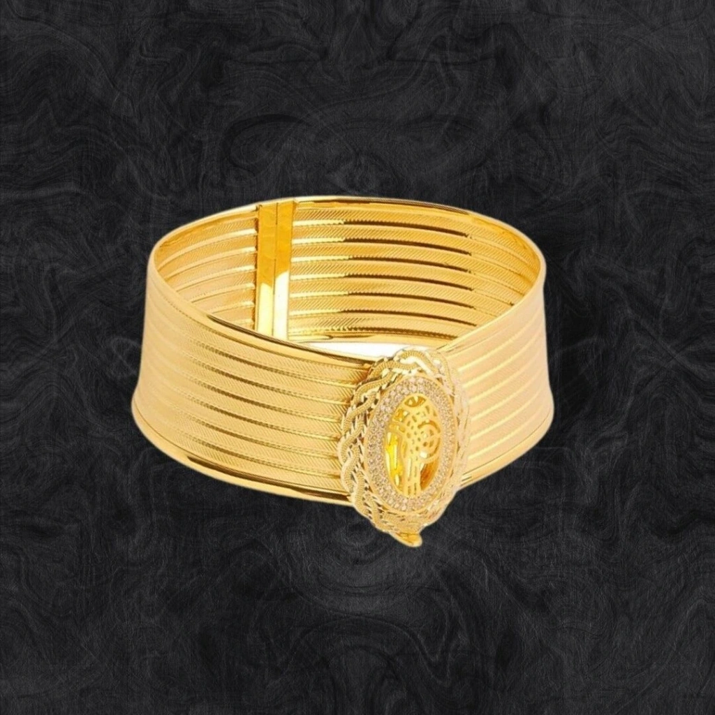 Bu 8 Ayar Altın Trabzon Hasır Kelepçe, Evla Kuyumculuk tarafından özenle tasarlanmıştır . Bir mücevherat ürünüdür. Kaliteli malzemeler kullanılarak yapılmış ve benzersiz tasarımıyla dikkat çekmektedir. Bu kelepçe, 8 ayar altın kullanılarak üretilmiştir ve toplamda 20,25 gram ağırlığındadır. Trabzon hasırı deseniyle süslenmiştir, bu da ona eşsiz bir dokunuş ve karakteristik bir görünüm kazandırır. Kelepçe şeklindeki tasarımı modern ve zarif bir görünüm sunar.
