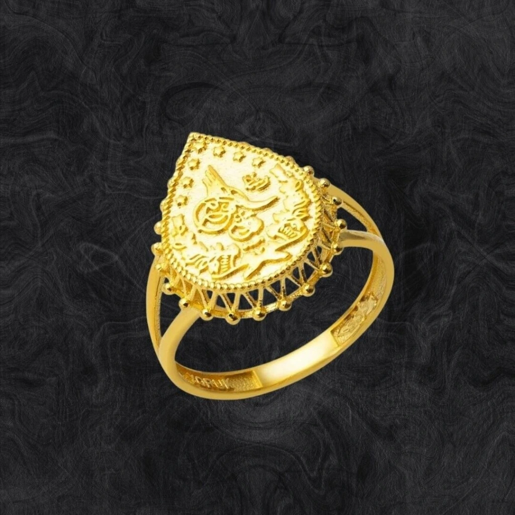 Bu 8 Ayar Çift Damla Tuğra Altın Yüzük, EvlaKuyumculuk tarafından özenle üretilmiş özel bir parçadır.