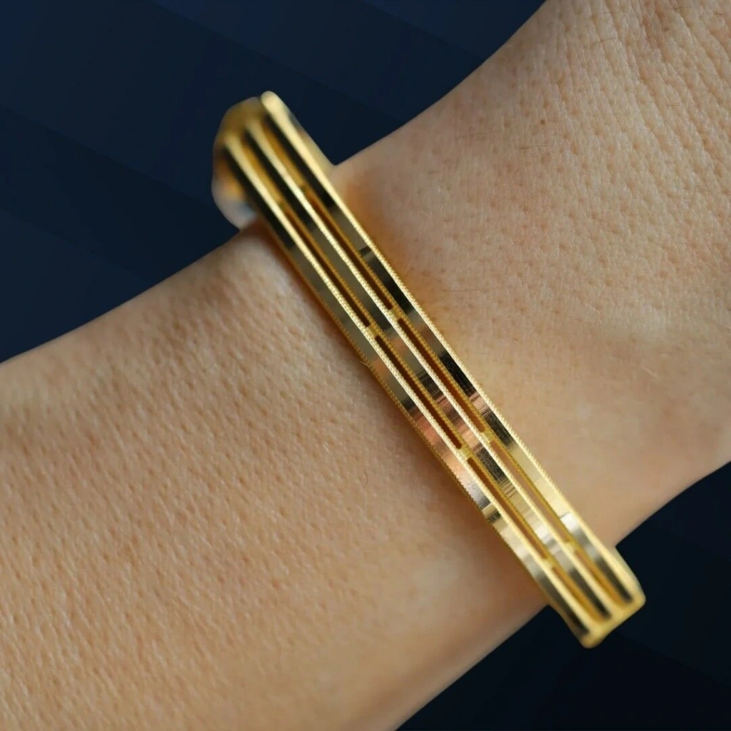 Altının ışıltısını bileğinizde hissetmeye hazır olun! Evla Kuyumculuk güvencesiyle sunulan 14 Ayar Altın 3’lü Ajda Kelepçe, 12,00 gram ağırlığıyla hem gösterişli hem de zarif bir duruş sergiliyor. Özel tasarımı sayesinde klasik ve modern çizgileri bir araya getirerek her stile uyum sağlayan bu kelepçe, şıklığınıza ışıltı katacak.