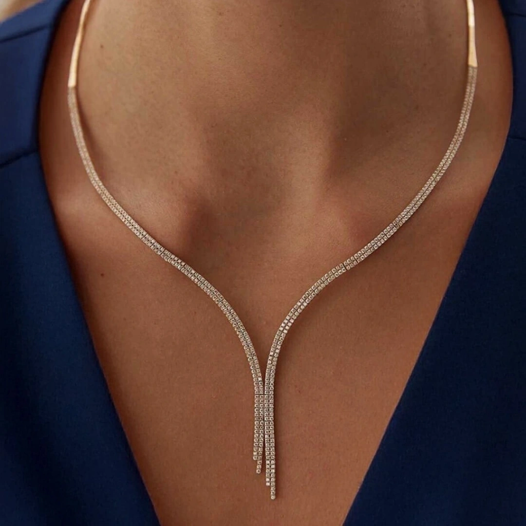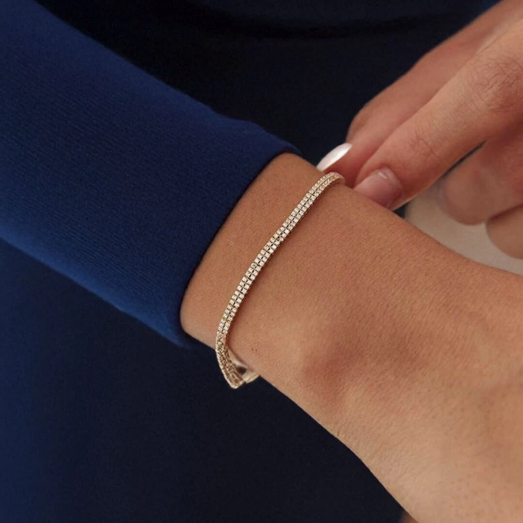 Zarafeti ve modern tasarımı bir araya getiren Altın Çift Sıra Su Yolu Set, özel günlerde ve günlük kullanımda stilinizi tamamlamak için tasarlandı. 14 ayar altın kullanılarak üretilen bu eşsiz altın su yolu set takımı , dikkat çekici svarowski taş detayları ve göz alıcı ışıltısıyla her anınıza değer katar.