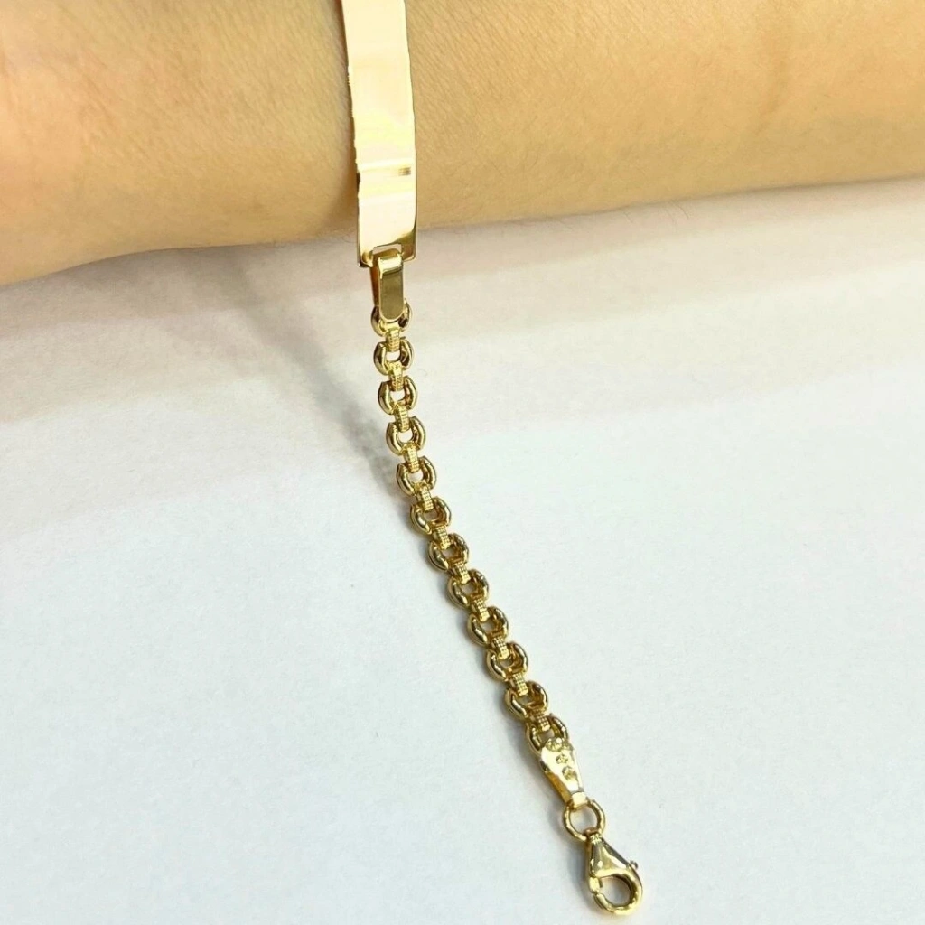 Bu altın çocuk bilekliği, hem şık görünümü hem de dayanıklı yapısıyla çocuklar için harika bir hediye seçeneğidir.