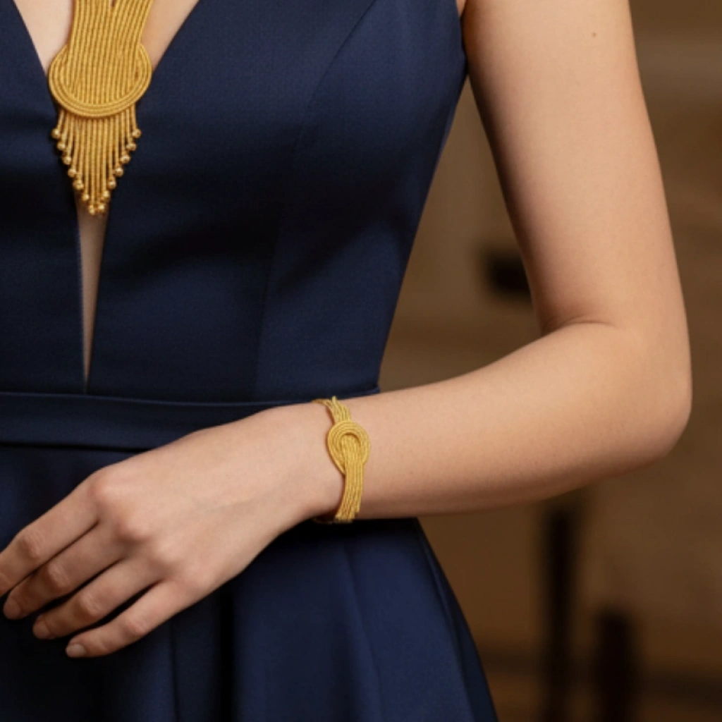 Kolye ve Bİleklikden oluşan ikili altın kalze set takımıdır.