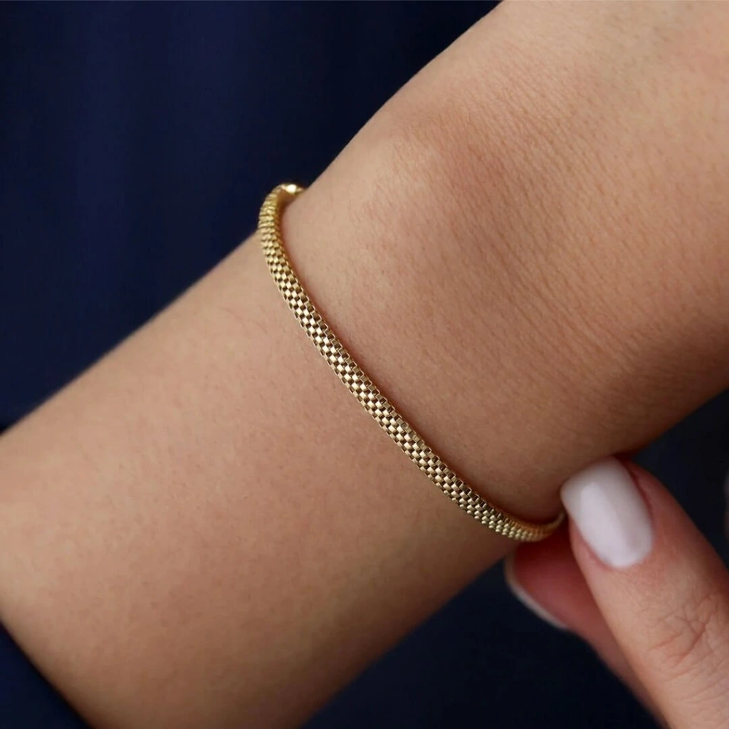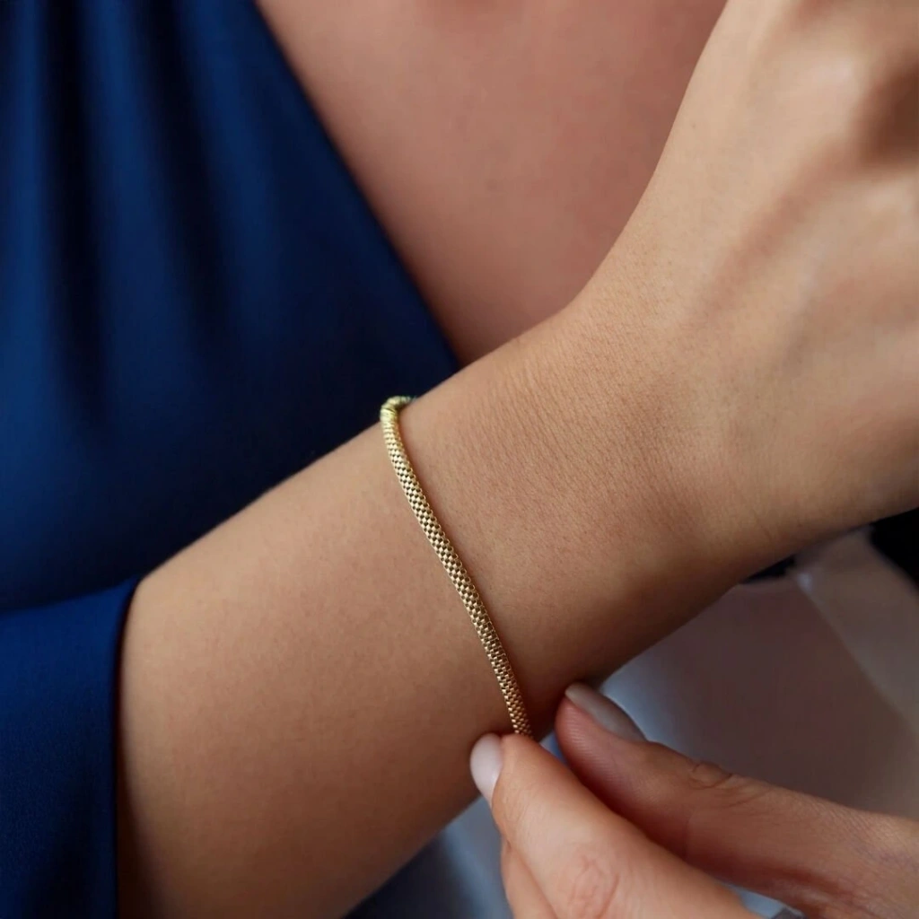 Minimal ve zarif detayları sevenler için özel olarak tasarlanan Altın Jessica Bileklik, 14 ayar altının ışıltısıyla bileğinizde zarif bir dokunuş bırakır. Günlük kullanımda ya da özel anlarda stilinizi tamamlayan bu model, sade şıklığın en güzel örneklerinden biridir.