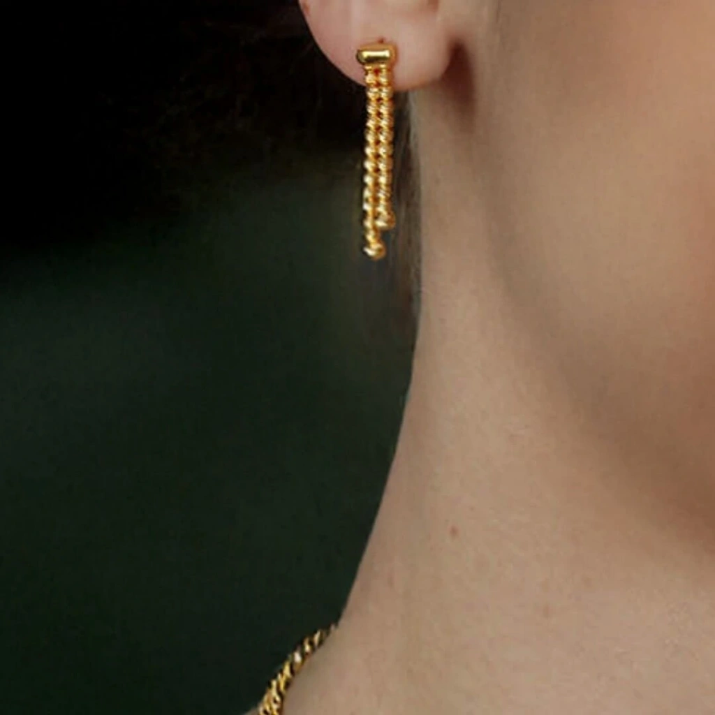 Altın Lale Örgü Mesh Set, ince işçilikle hazırlanmış gerdanlık, bileklik ve küpeden oluşan eşsiz bir kombinasyon sunar. 14 ayar altın kullanılarak üretilen bu set, 22 ayar altın renginde parlaklığıyla göz kamaştırır.