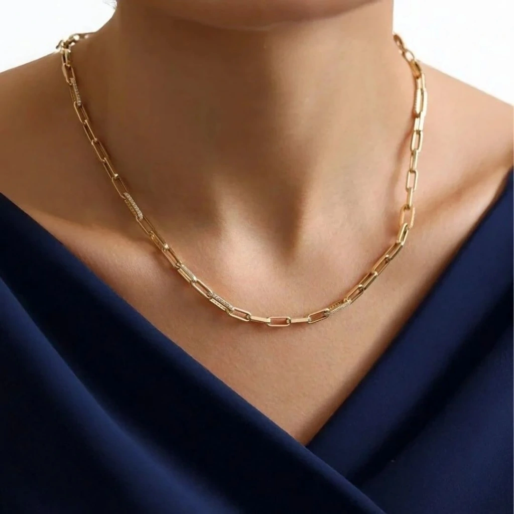 - Tasarım: Taş detaylı, zarif ataç zincir