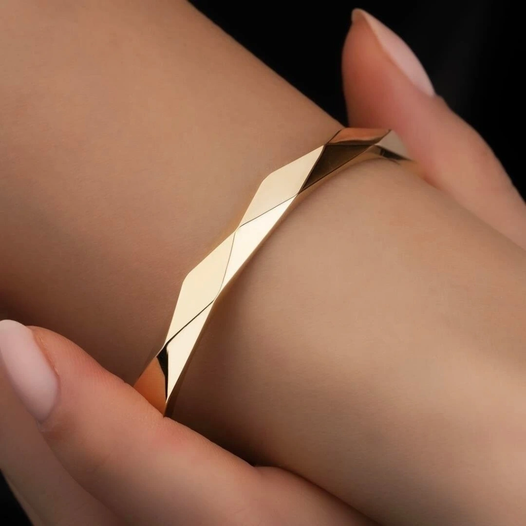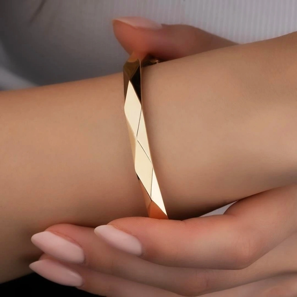 Model: Taşsız, prizma desenli kelepçe bilezik