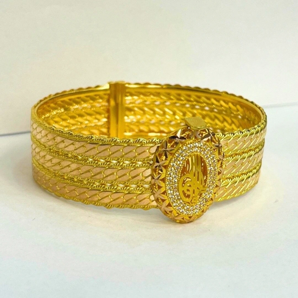 Bu 8 ayar sarı altın 3 sıra burmalı kelepçe, modern ve şık bir tasarıma sahiptir. Burmalı detaylarıyla zarif bir görünüm sunarak, her türlü kıyafetle uyum sağlar.